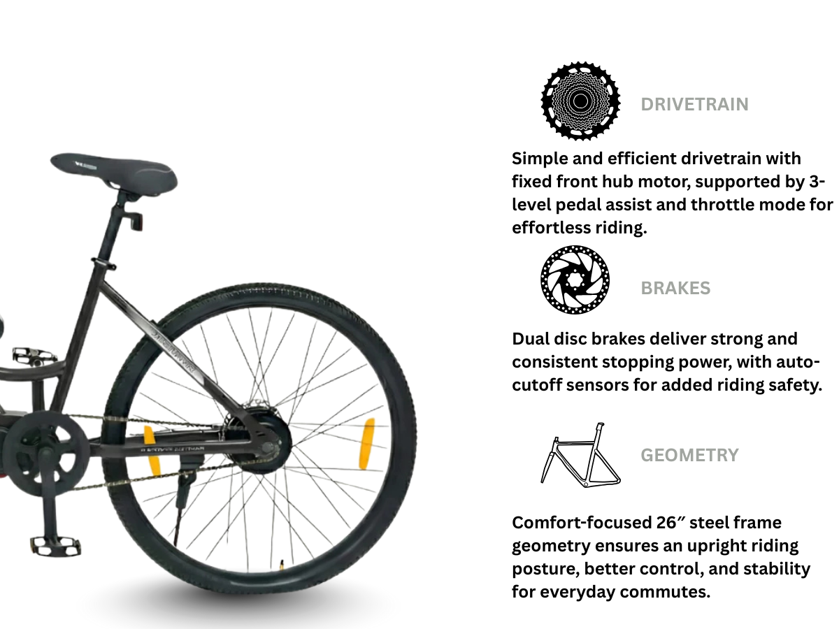 Ideal for beginners, daily commuters, and riders seeking simple electric mobility.