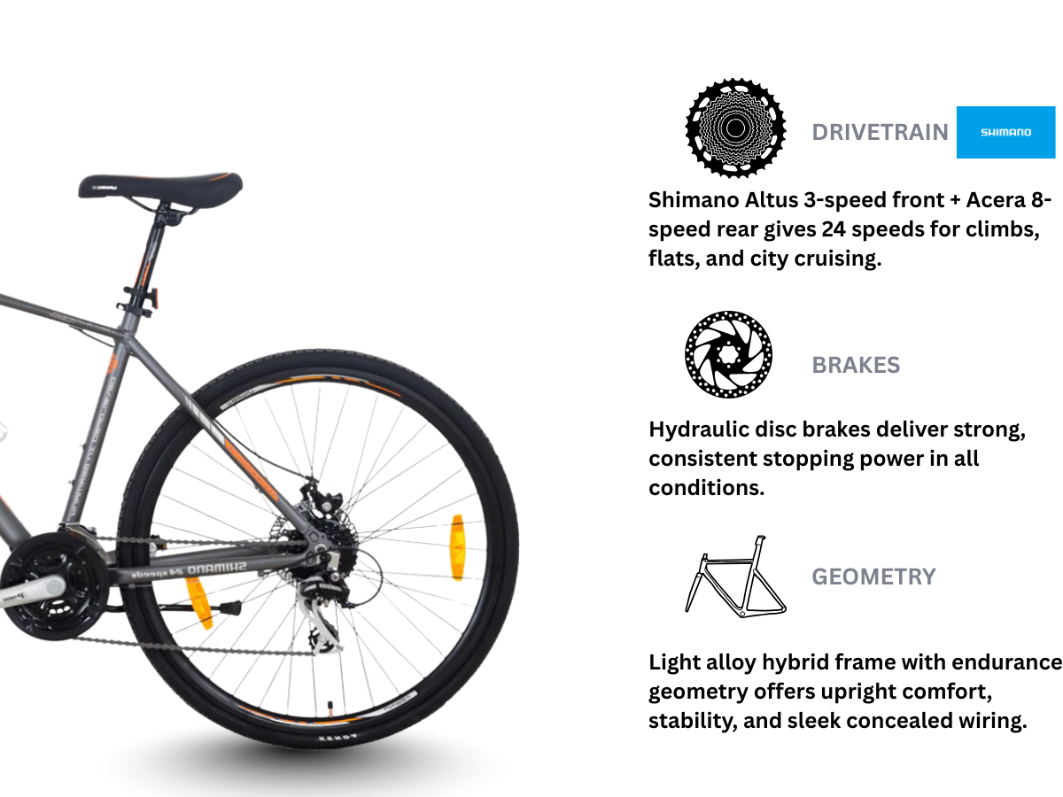 This Hybrid Bicycle from Unirox comes with Hydraulic Disc Brakes.